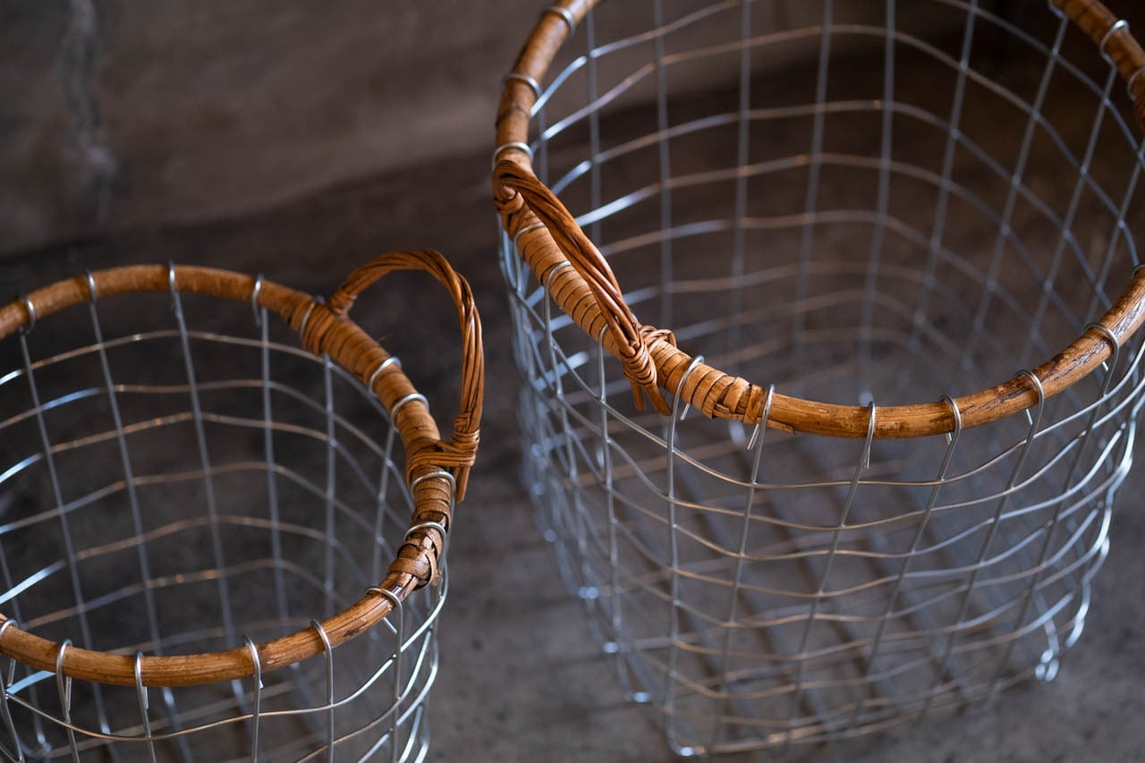 RATTAN TOP WIRE BASKETのS、Mサイズのセットです。