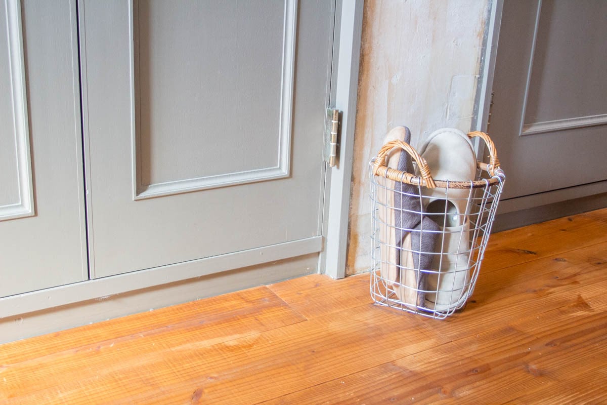 Sサイズは、直径約24cmほどで少し小さめですが、玄関先でスリッパ入れとしてや