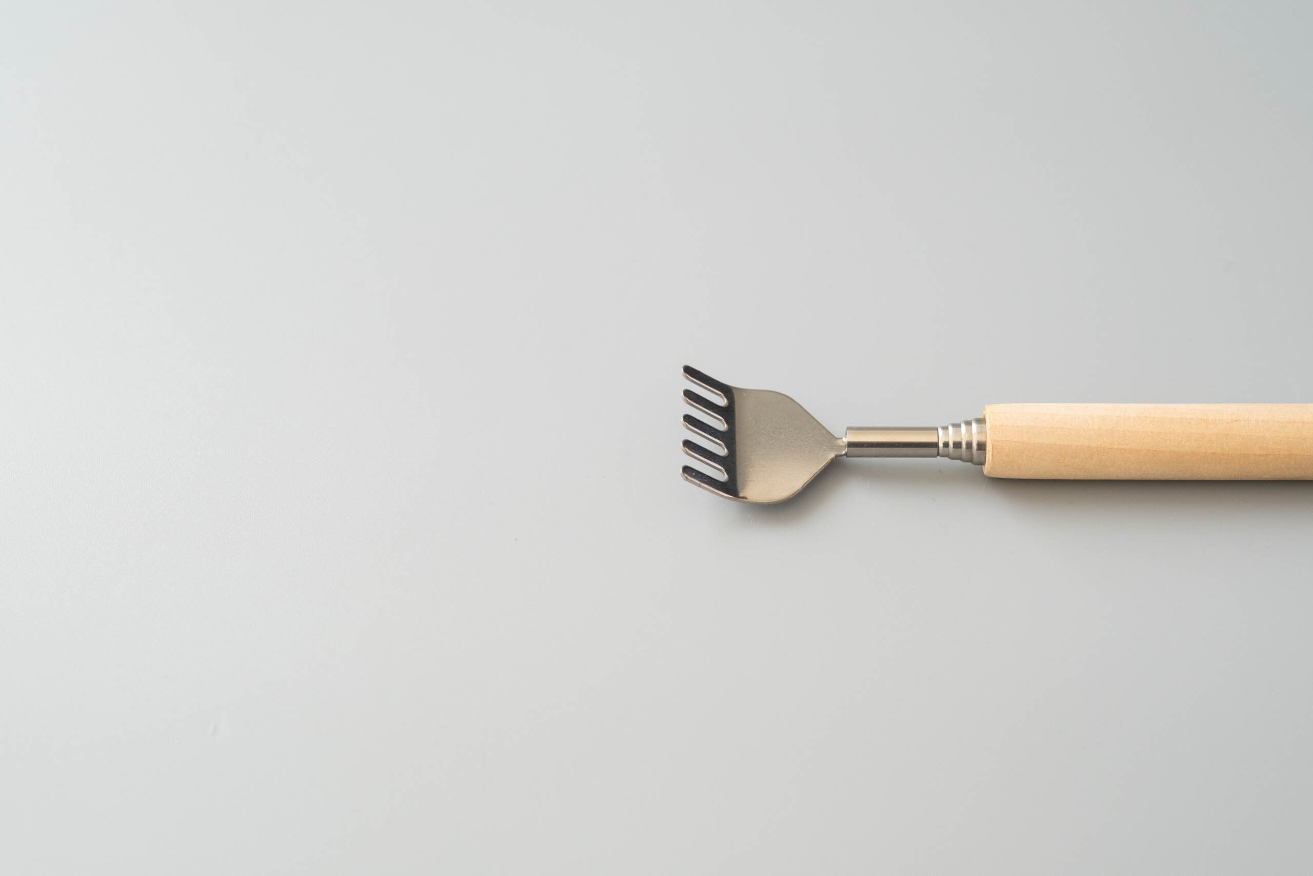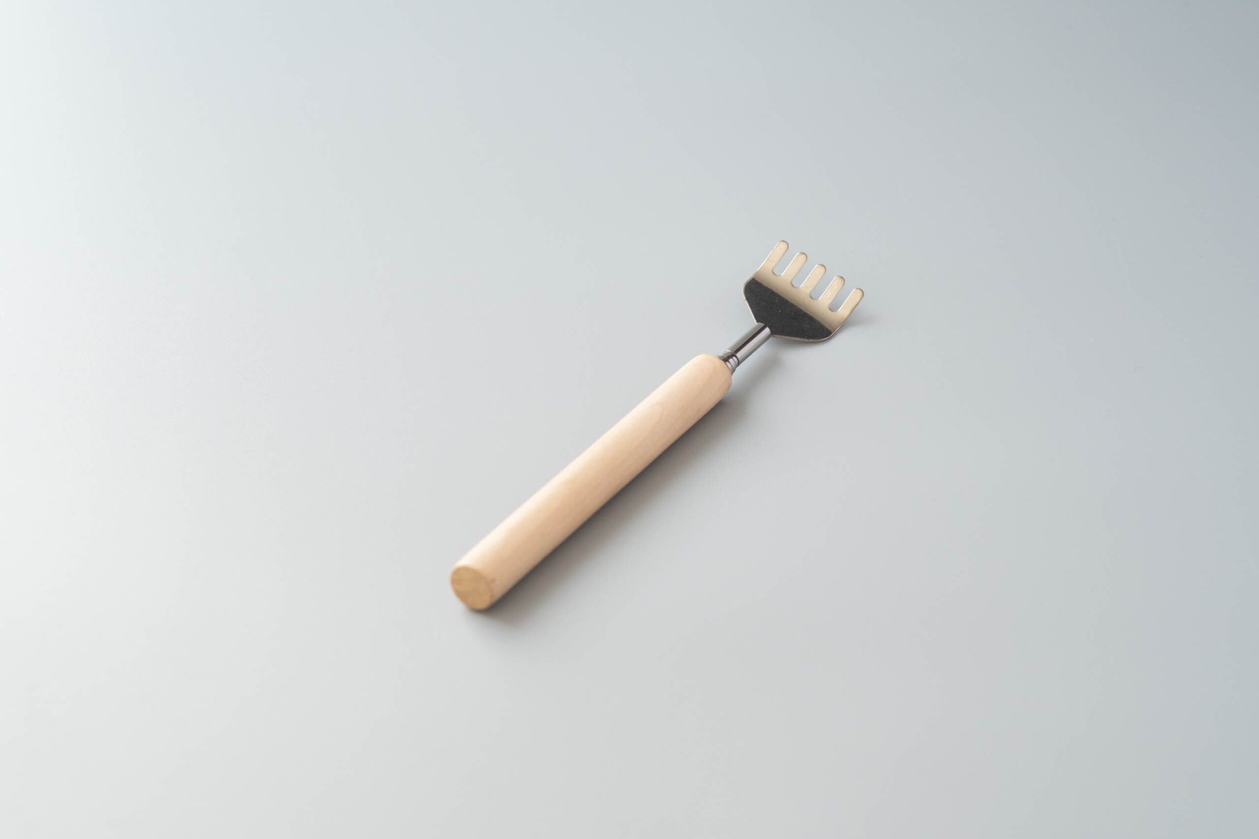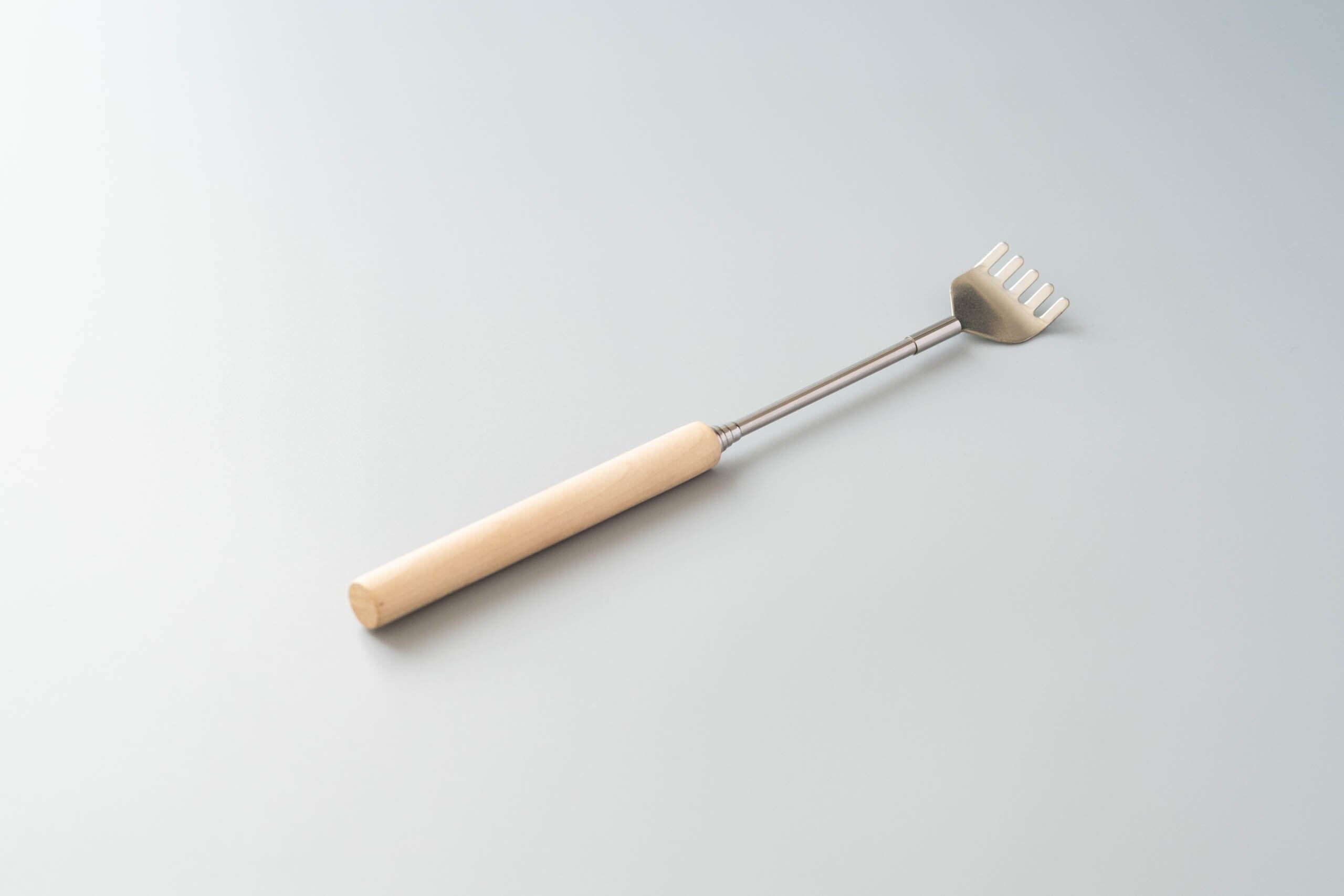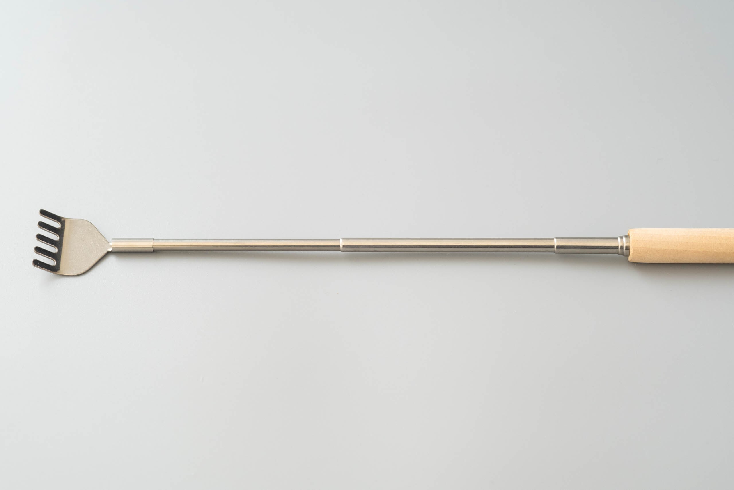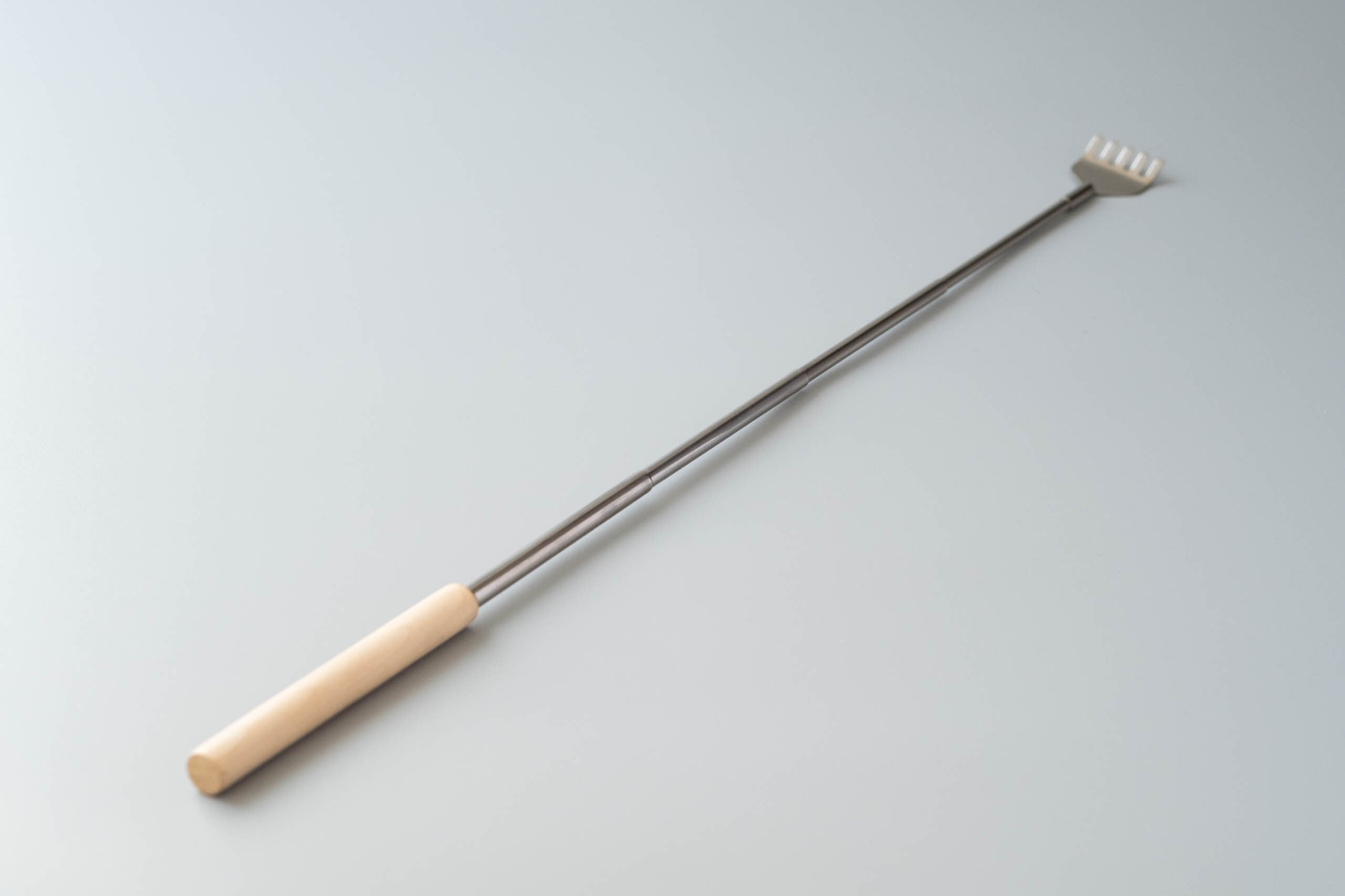 アメリカのブランド”キッカーランド”のまごのては、伸縮式になっているので収納にも便利です。手の部分はエッジを丸く加工しているので、優しく背中をかいてくれます。