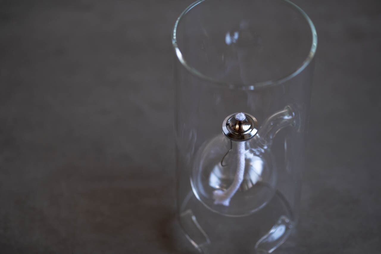 チェコのガラス職人が一点一点ハンドメイドで製作するオイルランプです。ガラスの円柱の中にオイルランプが取り付けられたデザインで、横の穴から簡単にオイルを補充することができます。