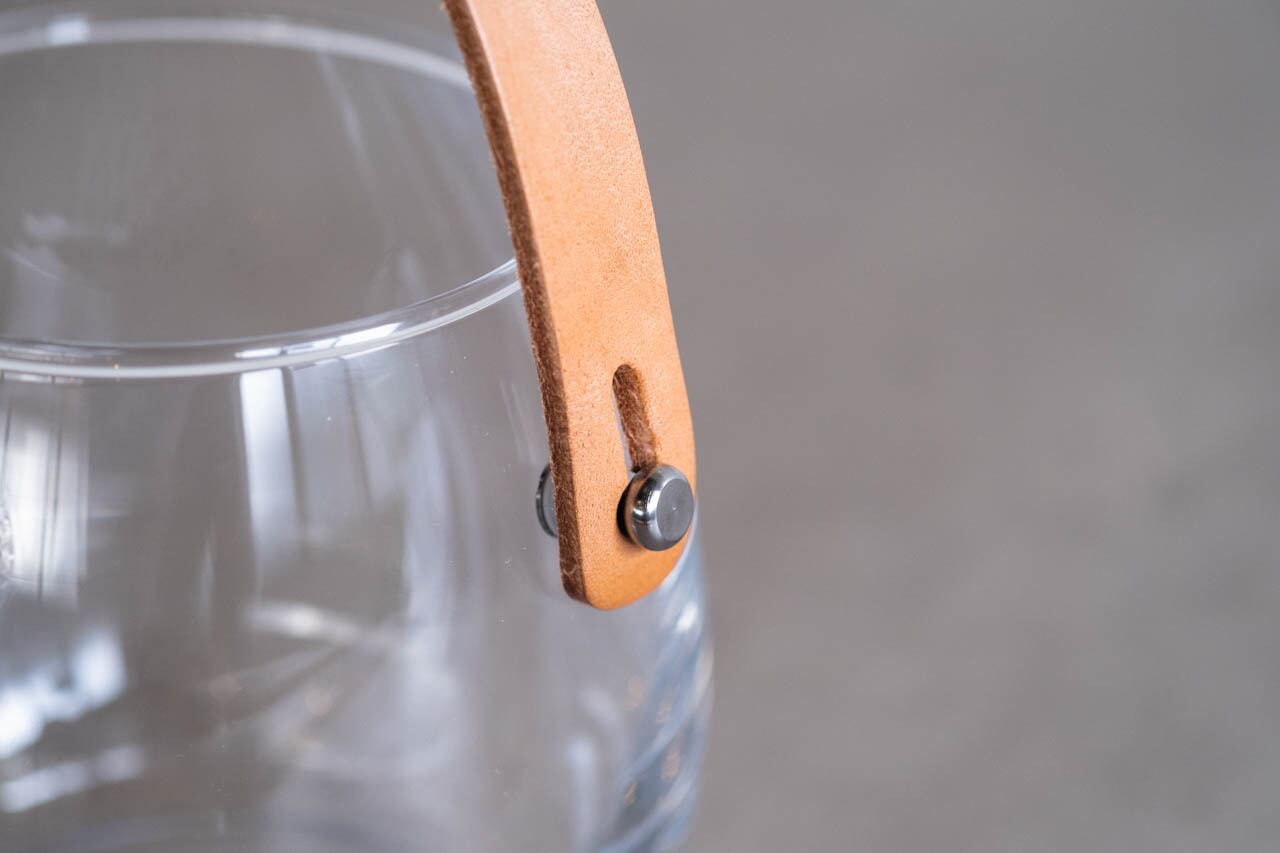 素材:無鉛ガラス(吹きガラス)、皮革、ステンレス鋼