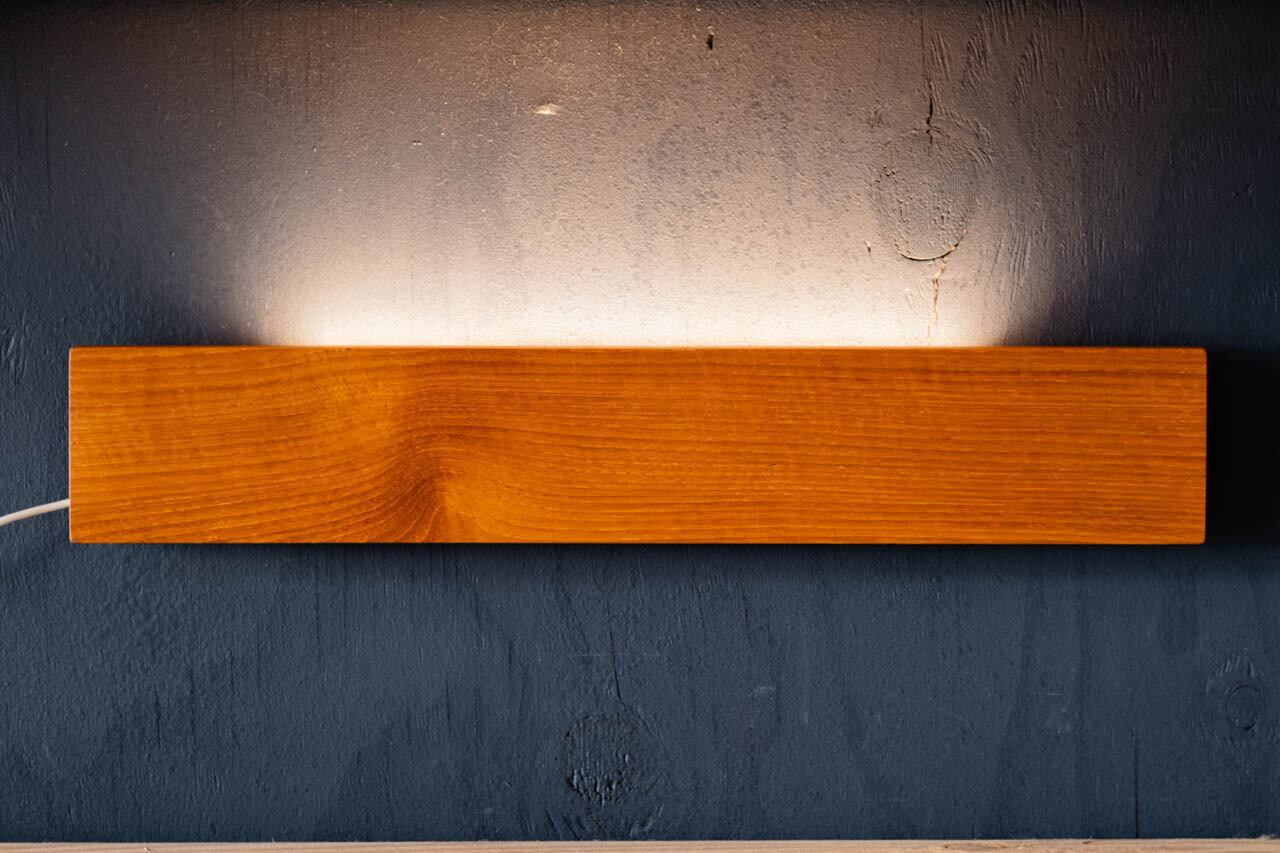 タッチパネルが内蔵された、木製のLED間接照明です。