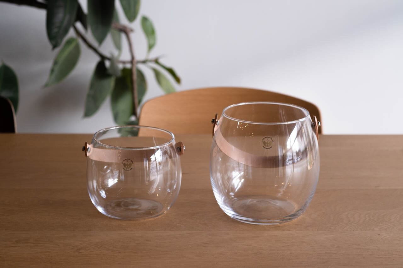 素材:無鉛ガラス(吹きガラス)、皮革、ステンレス鋼