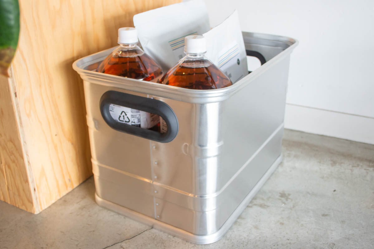 レコードの収納やガレージの小物整理、キャンプ道具など趣味の道具整理にオススメのコンテナです。