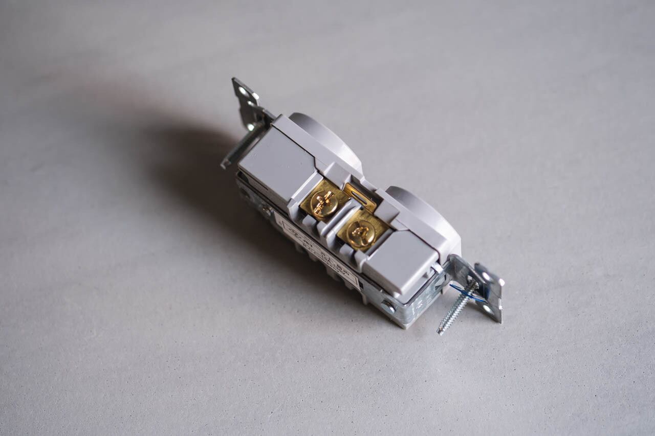 日本のコンセントとは少し違って丸みの帯びたデザインです。
