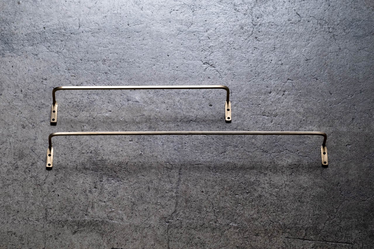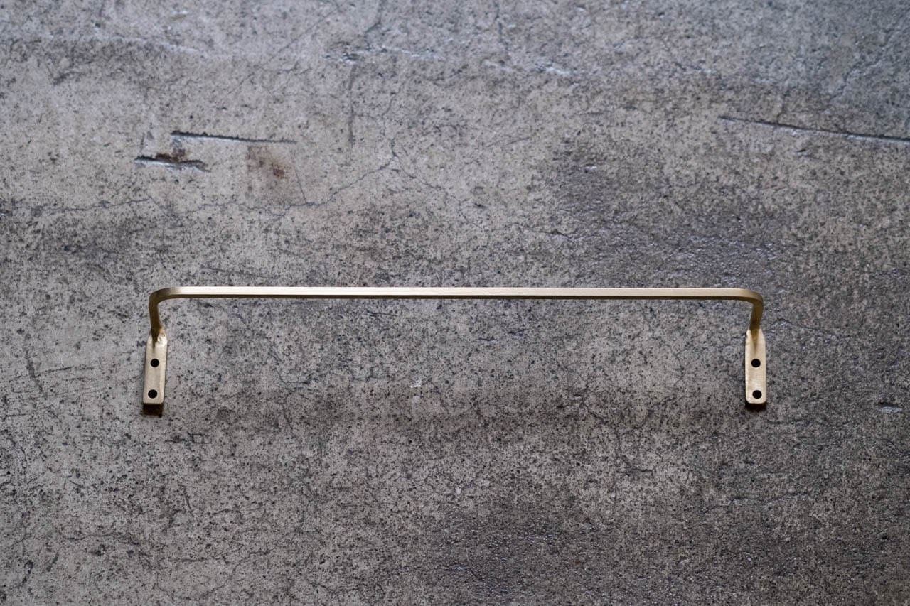 真鍮の角棒で作られた、シンプルなタオルレール。