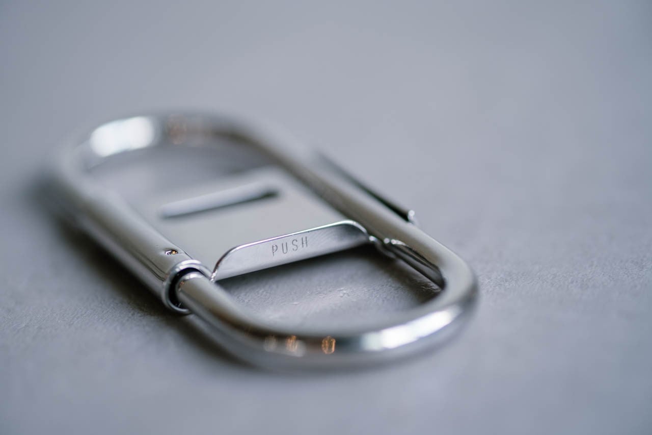 シンプルながら遊び心のあるカラビナタイプのキーリング。