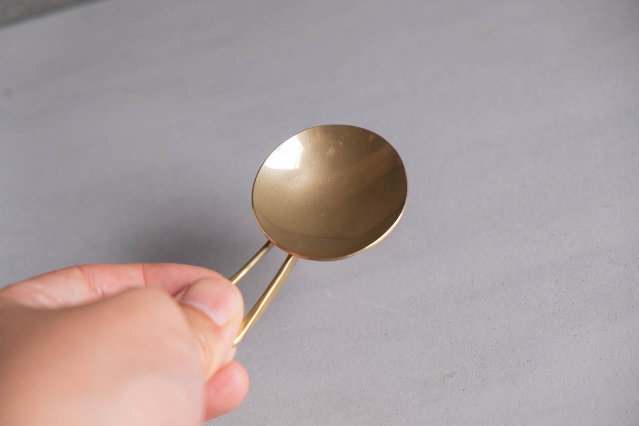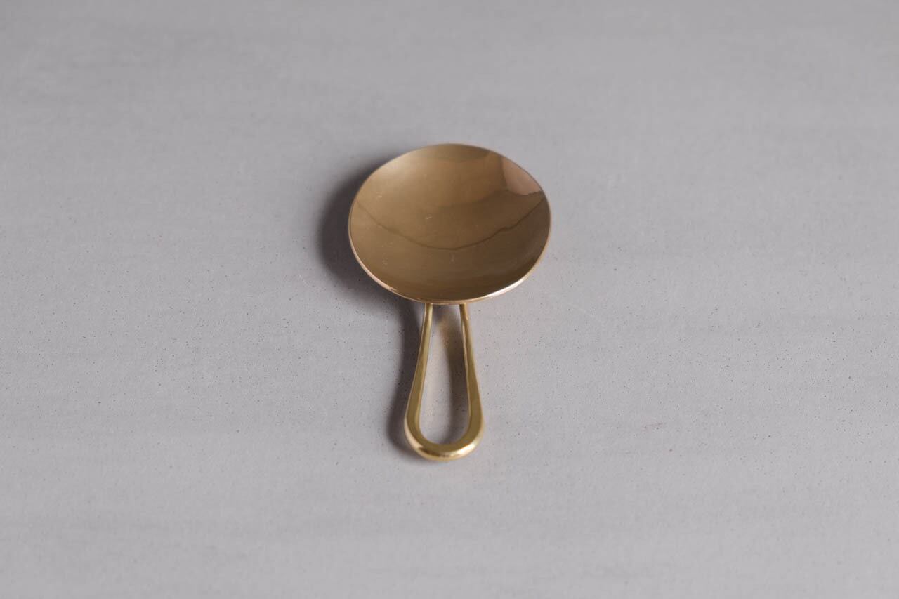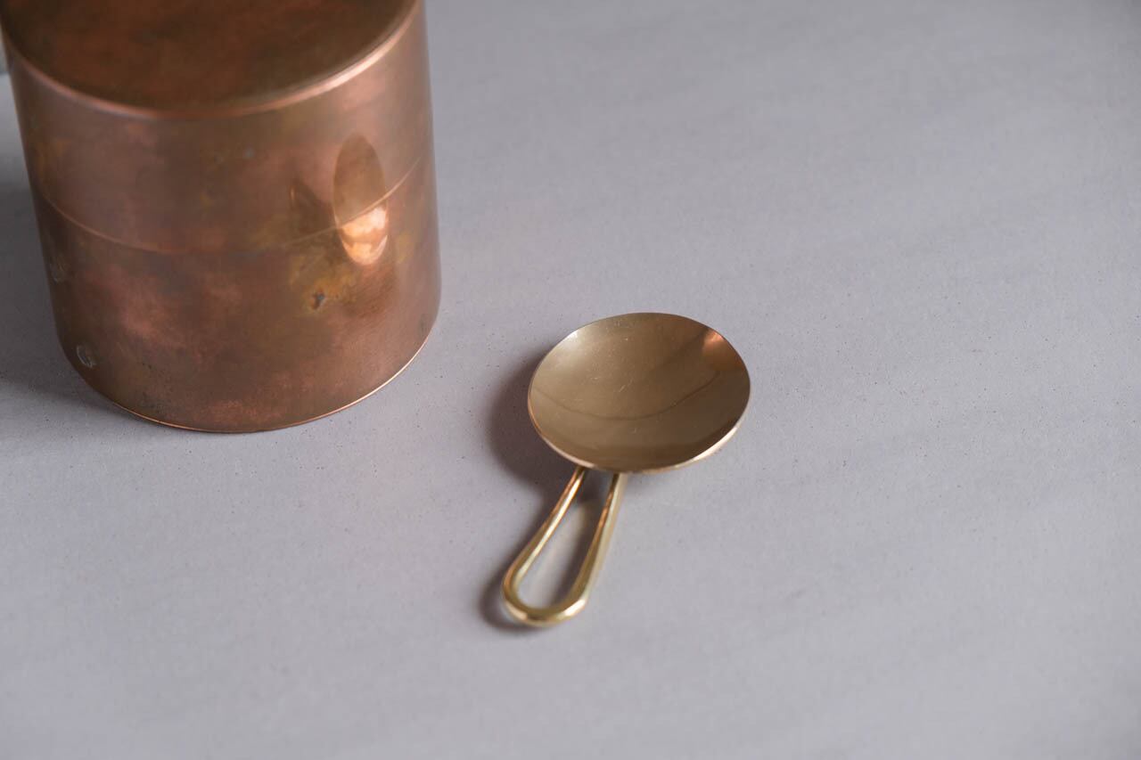 一点一点叩いたり伸ばしたりして作られた、真鍮製の茶さじです。