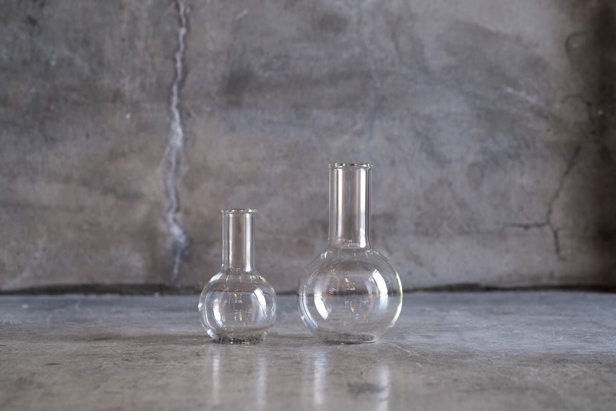BOROSIL社が製造する本物の実験器具から、目盛やプリントだけを取り除きました。