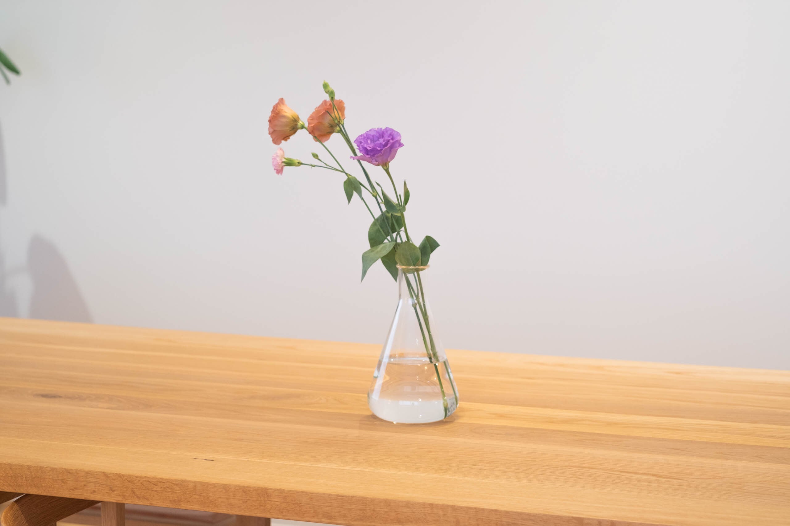 プリントがないことで、花器や収納などでもインテリアにすっとなじみ、中身を引き立てます。