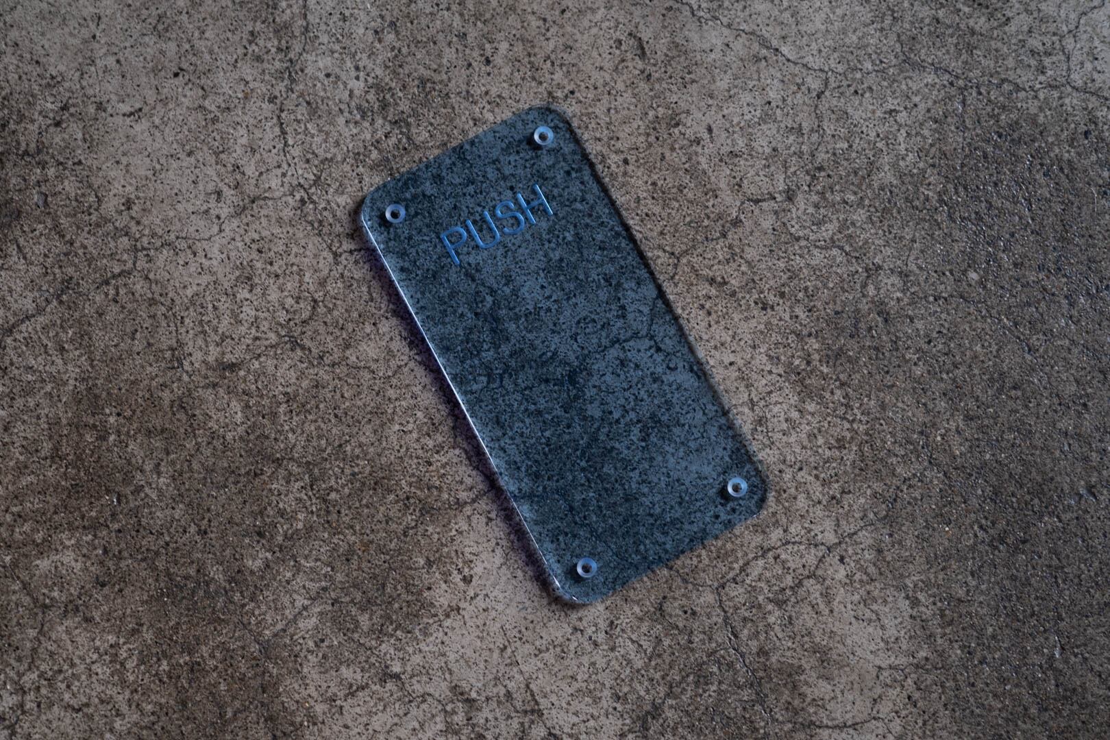 珍しい透明アクリル製のPUSHプレート。