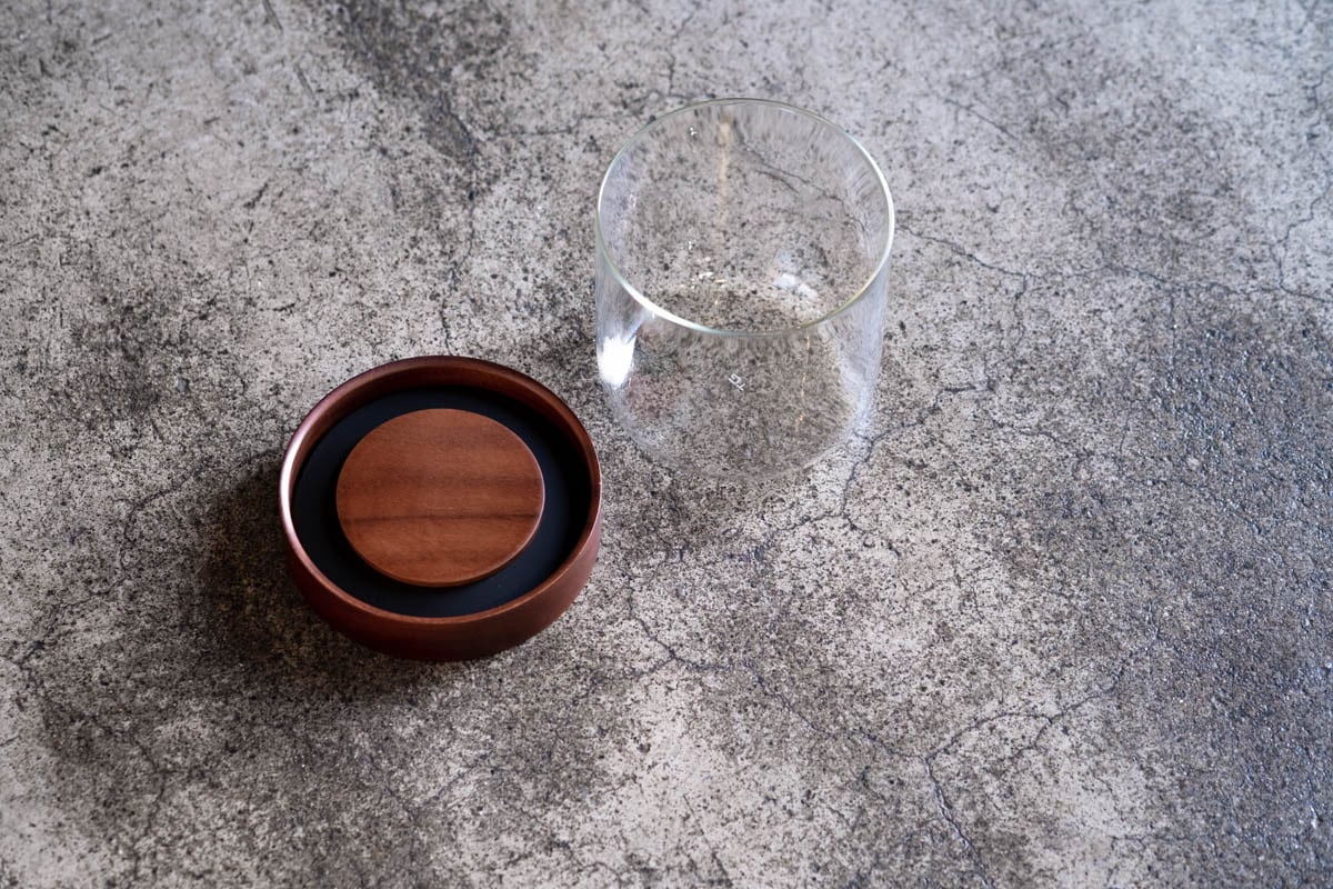 アカシアの蓋と台湾ガラスのキャニスター。